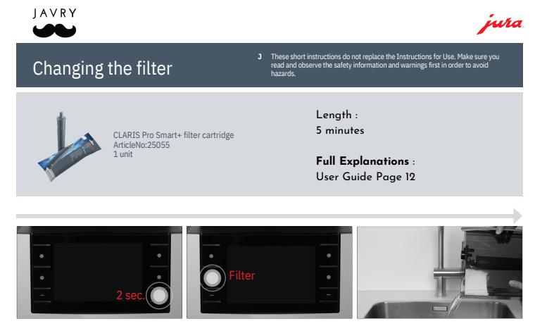 Condition: The home screen is displayed, or the filter symbol $ appears in red on the JURA Cockpit dashboard if the installed filter is exhausted.