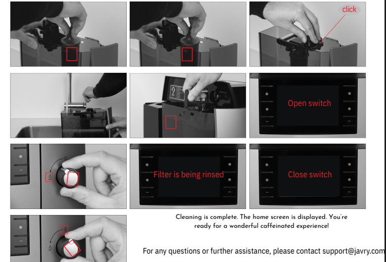 6. The machine automatically detects that a new filter cartridge has been installed.