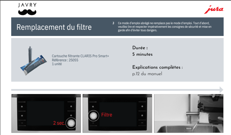 Nous vous mettons à disposition plusieurs supports qui vous aideront à changer le filtre de votre machine à café :