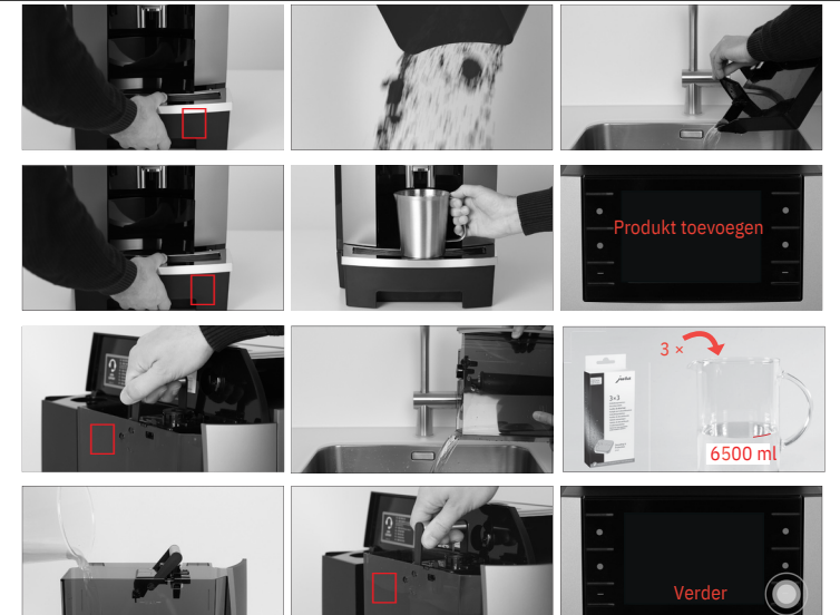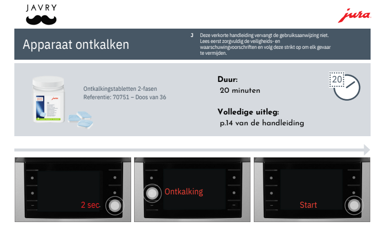 Deze gids toont met beelden hoe u stap voor stap uw Jura W4 kunt ontkalken.