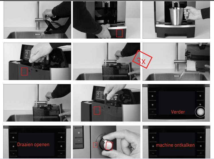 We hebben verschillende hulpmiddelen ter beschikking gesteld om u te helpen bij het ontkalken van uw koffiemachine: