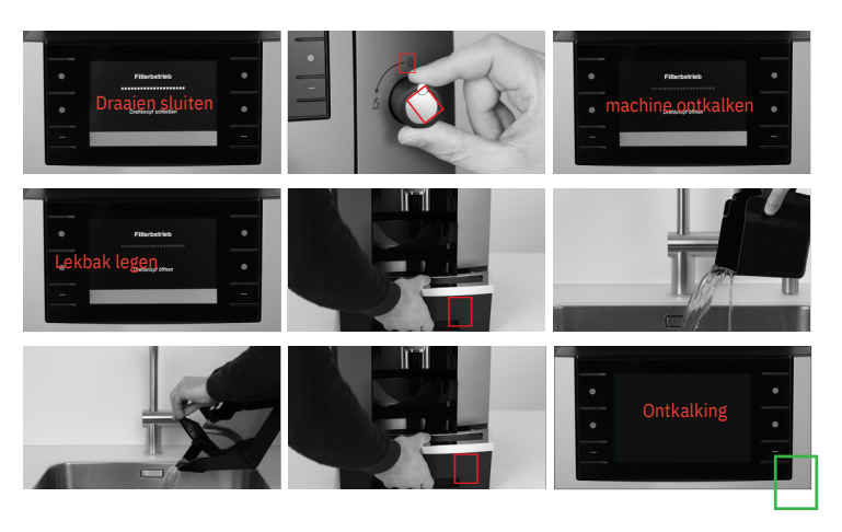 Voer het ontkalkingsprogramma volledig uit tot het einde.