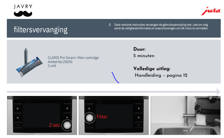 Deze gids toont in afbeeldingen hoe u het filter van uw koffiemachine vervangt: